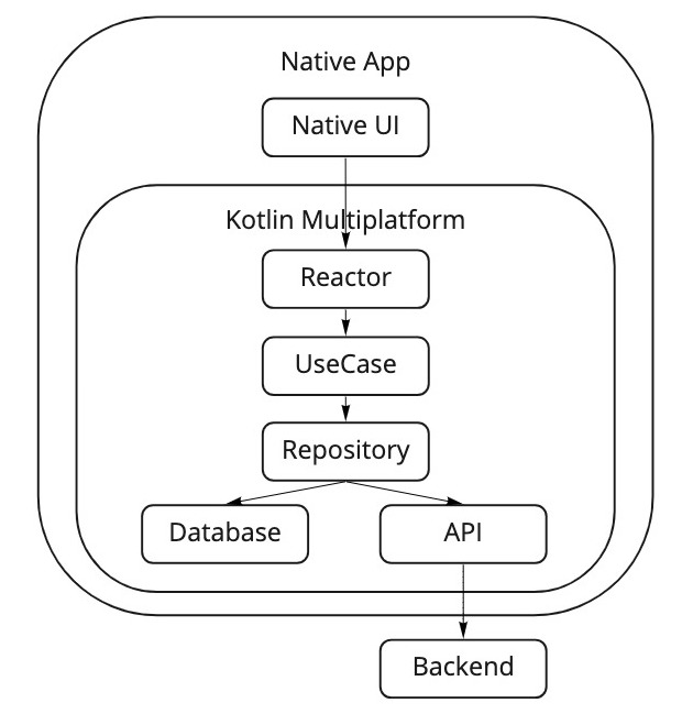 このような経緯から、既存のAndroid/iOSとの統合をしやすく、アーキテクチャ面での学習コストも下げるために、Kotlin MultiplatformでのアーキテクチャもReactorKitライクな実装にしました。