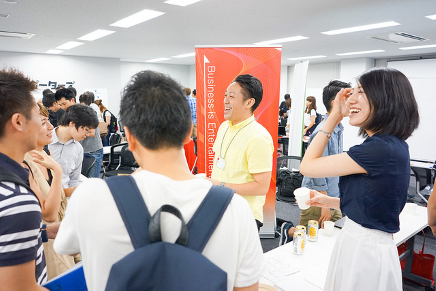 先日初となる「関西学生向けリアルウォンテッドリー(以下、関西リアルウォンテッドリー)」を開催しました!東京で開催している学生向けリアルウォンテッドリーと同様に学生のみなさんには皆、私服で来場してもらいました。当日会場では、参加学生が採用担当の方と真剣に語り合うブースがあったり、お酒(!)を手に笑顔で話すブースがあったりとリアルウォンテッドリーらしい通常の就職博では見られない光景が広がっていました。