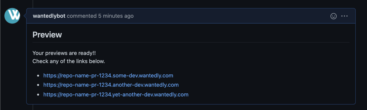 ワンクリックで変更をプレビューできる 本番に近い環境で動いているものを触ることができる チーム全員で同じものを同時に見ることができる ローカルの開発環境にコードを落としてきて起動する方法だとどうしてもここまで気軽ではないですし、特にそのサービスの起動方法を知らない他のチームのエンジニアや、デザイナ、カスタマーサポートといった人だけで変更が意図どおりであるかを確認するのは簡単ではありません。ローカルで確認する方法だとまた本番と開発用ラップトップの環境差異、開発用ラップトップ同士の環境差異などの問題を踏むこともあるので予期せぬところで詰まってしまうこともあります。
