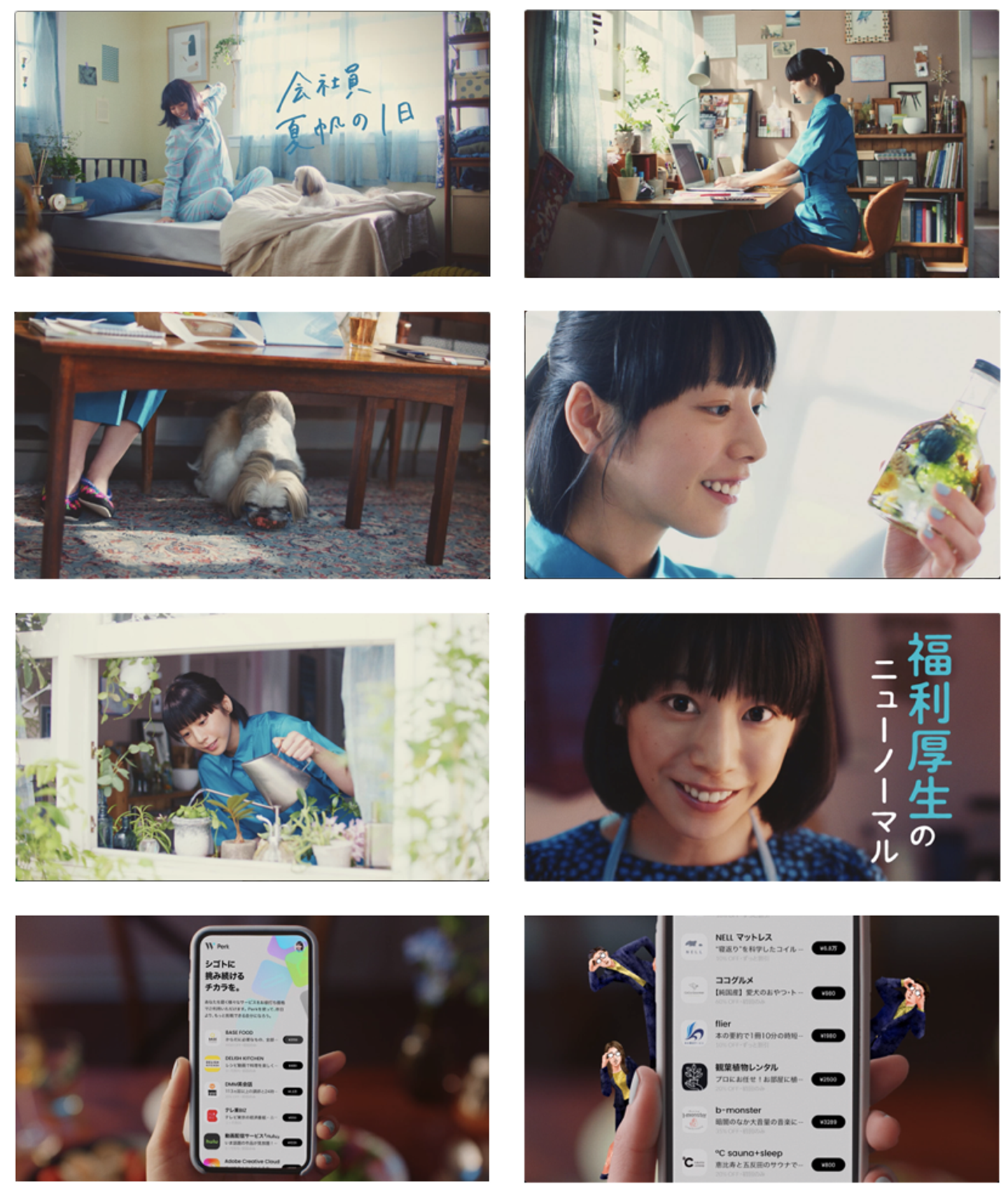 女優の夏帆さんを起用し、リモートワーク中の社員の一日を福利厚生サービス「Perk」が支援する模様を描きました。話題のサブスクからリモートワークの満足度を向上させる様々なサービスをお得に利用できる「Perk」がリモートワーク中の社員を支援できることを訴求します。掲載サービス数500社を突破した福利厚生サービス「Perk」は、Wantedlyの採用プランご利用企業は100名まで無料でご利用いただけます。