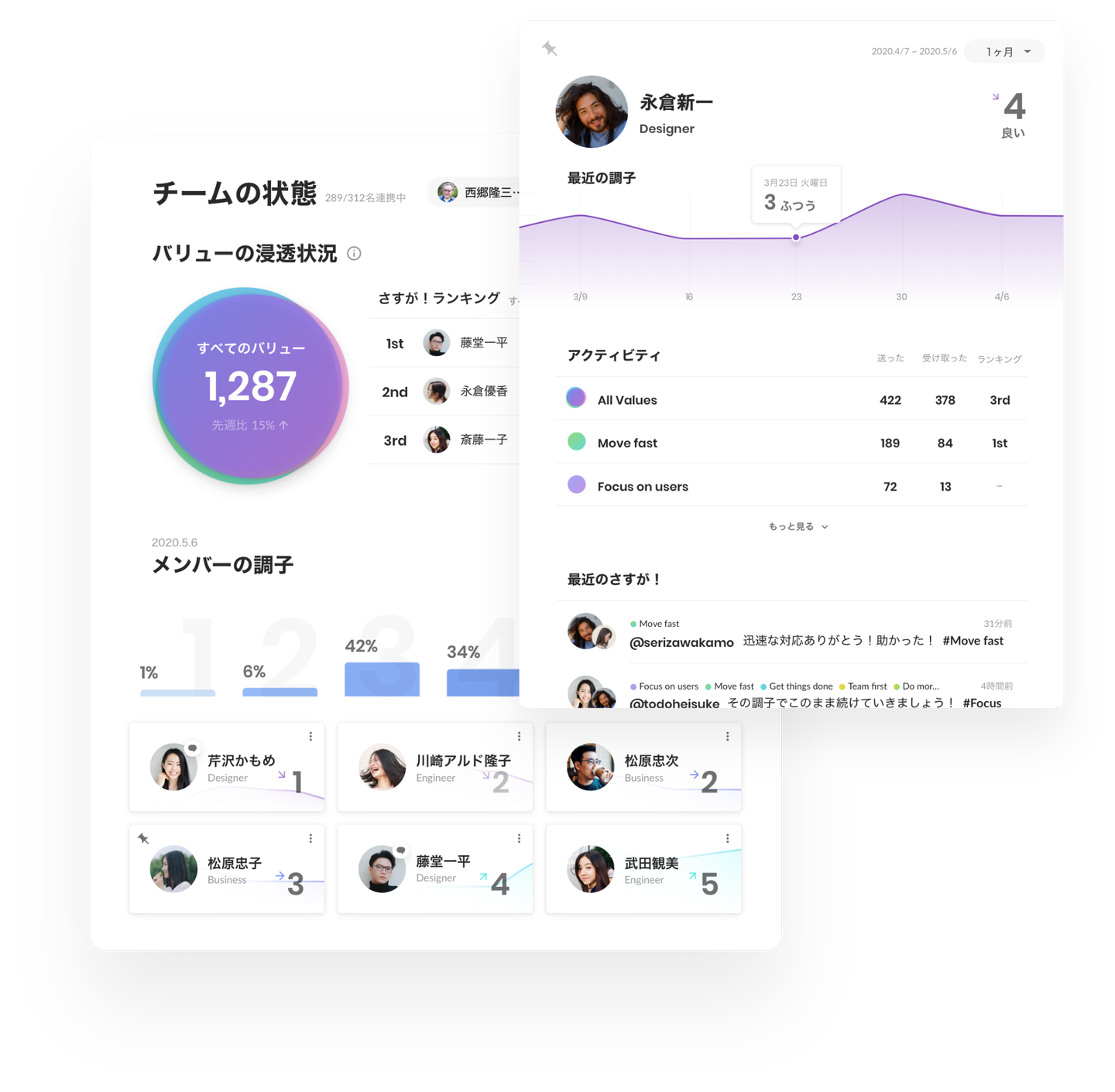 β版リリースからはメンバーがより自分の状態を手軽に詳しく伝えられる「調子どう?」機能の強化や管理画面の改善を行ってまいりました。マネージャーによるメンバーの現状把握と改善を支援することで、自律的なチーム作りをサポートします。
