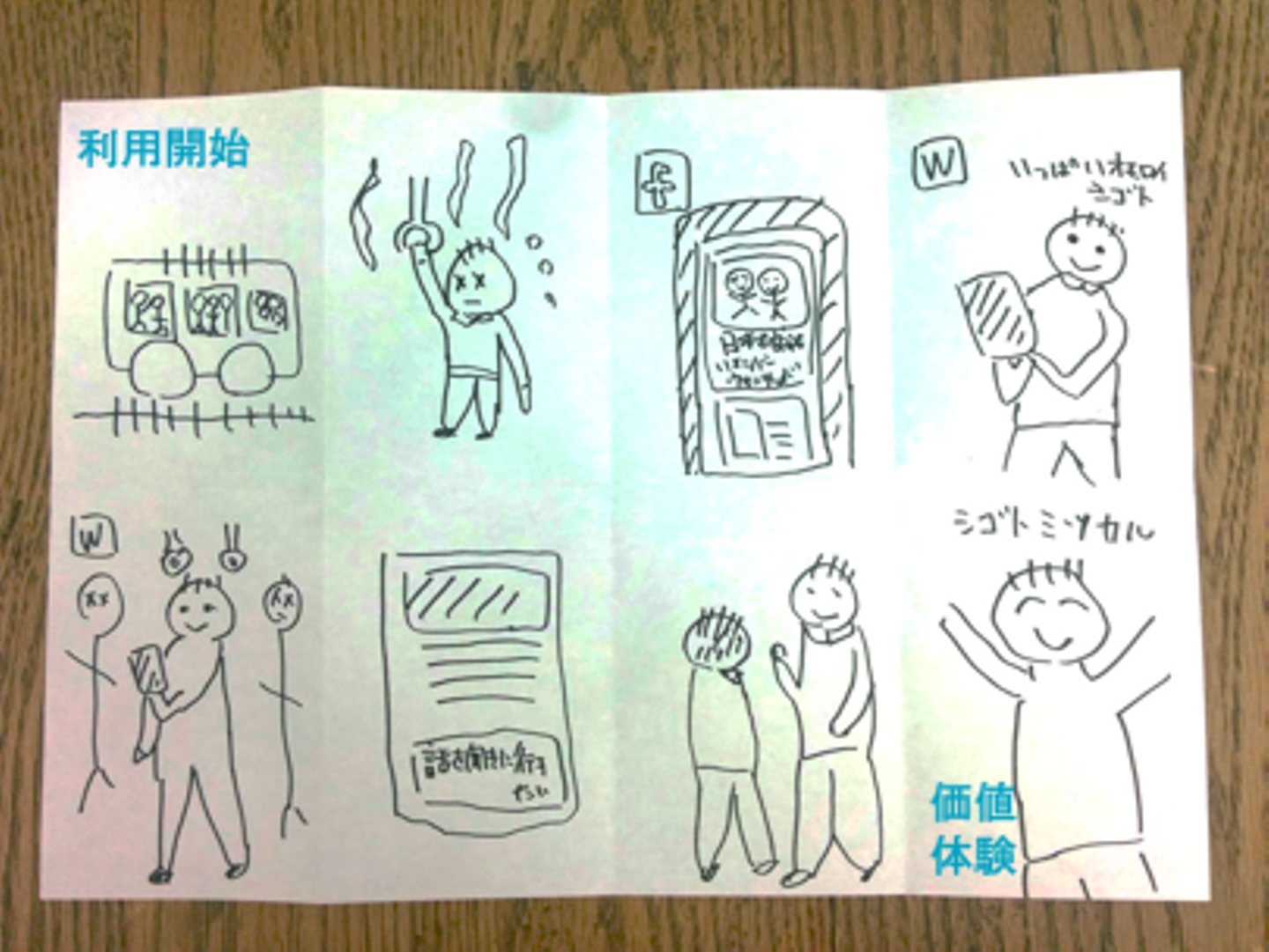ユーザストーリーはペルソナに対する全体的な施策を考えるときにももちろん有効ですが、個別の施策を実施するときにも使っています。その際にテキストだけで書くことも多いですが、インターン生やジュニアなメンバーと一緒に施策を実施する場合は、ストーリーボード等を使って簡単な絵を使ってストーリーを説明したほうが効果的です。