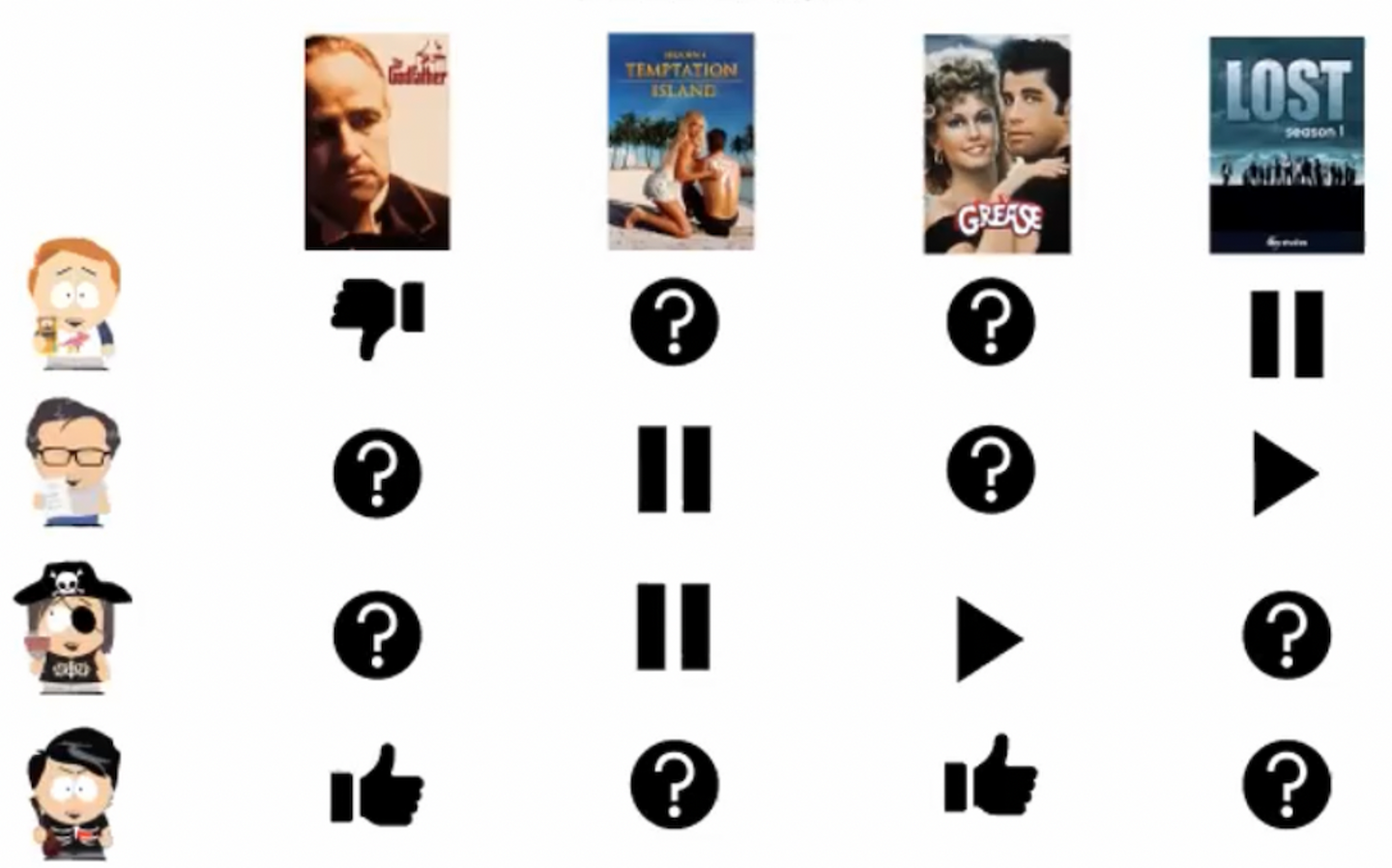 スコアをつけるために、ユーザの行動を使うことが出来ます。各ユーザは明示的に作品を好むと評価する(Explicit feedback)場合もあれば、視聴をするなどで暗黙的に作品を好むという情報を残す場合(Implict feedback)もあります。