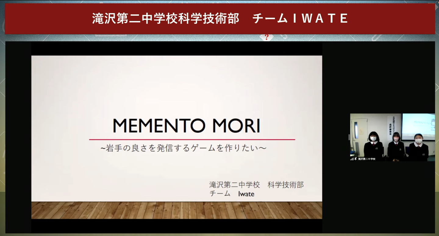 Wantedly 賞には、岩手県滝沢市立滝沢第二中学校 科学技術部 チーム「IWATE」さんの MEMENTO MORI を選ばせていただきました。おめでとうございます!