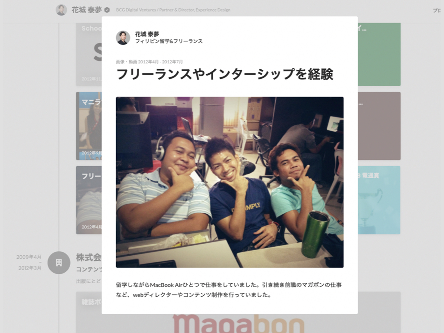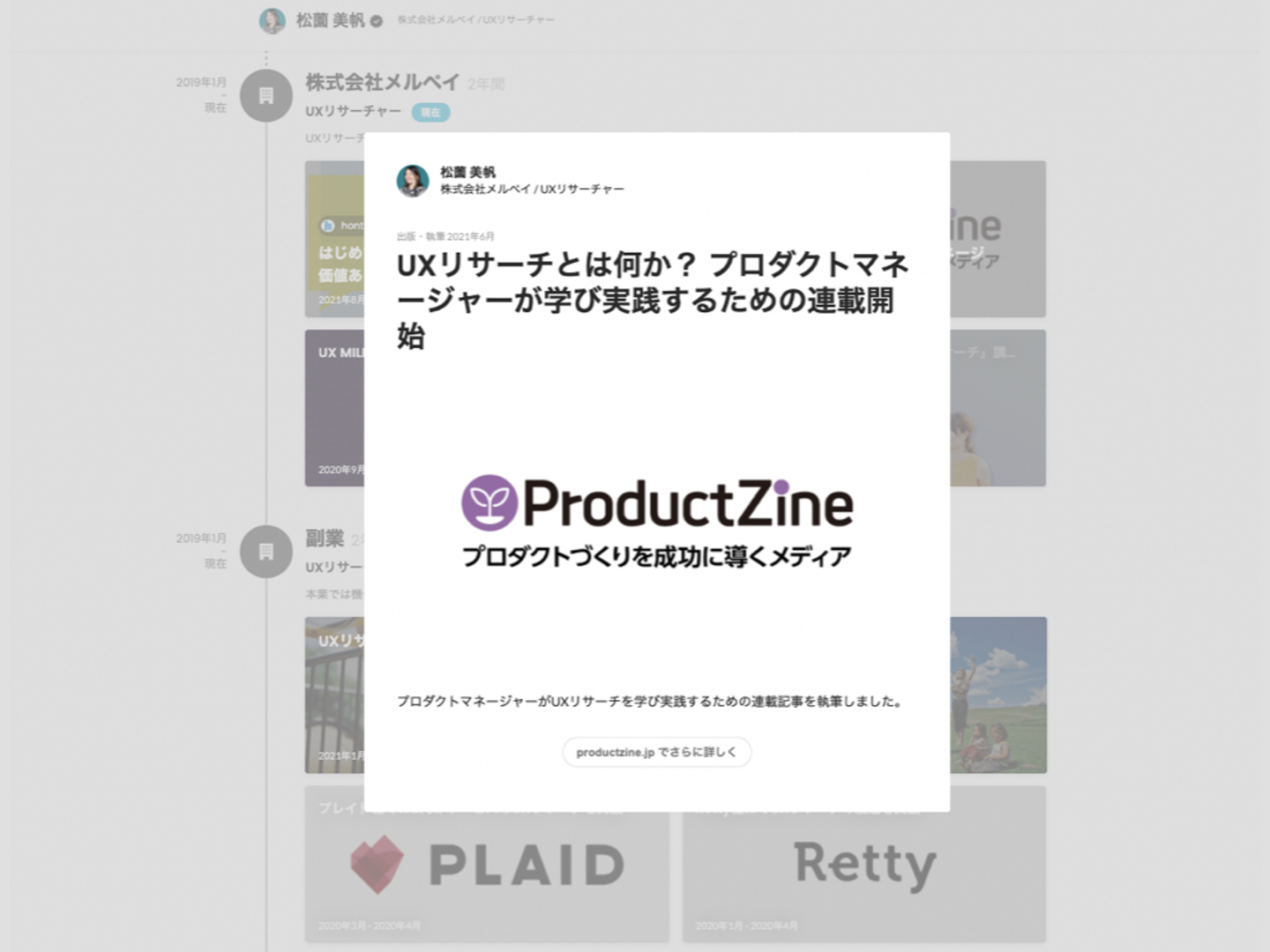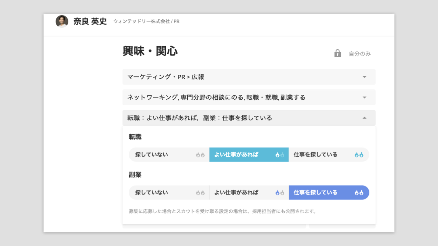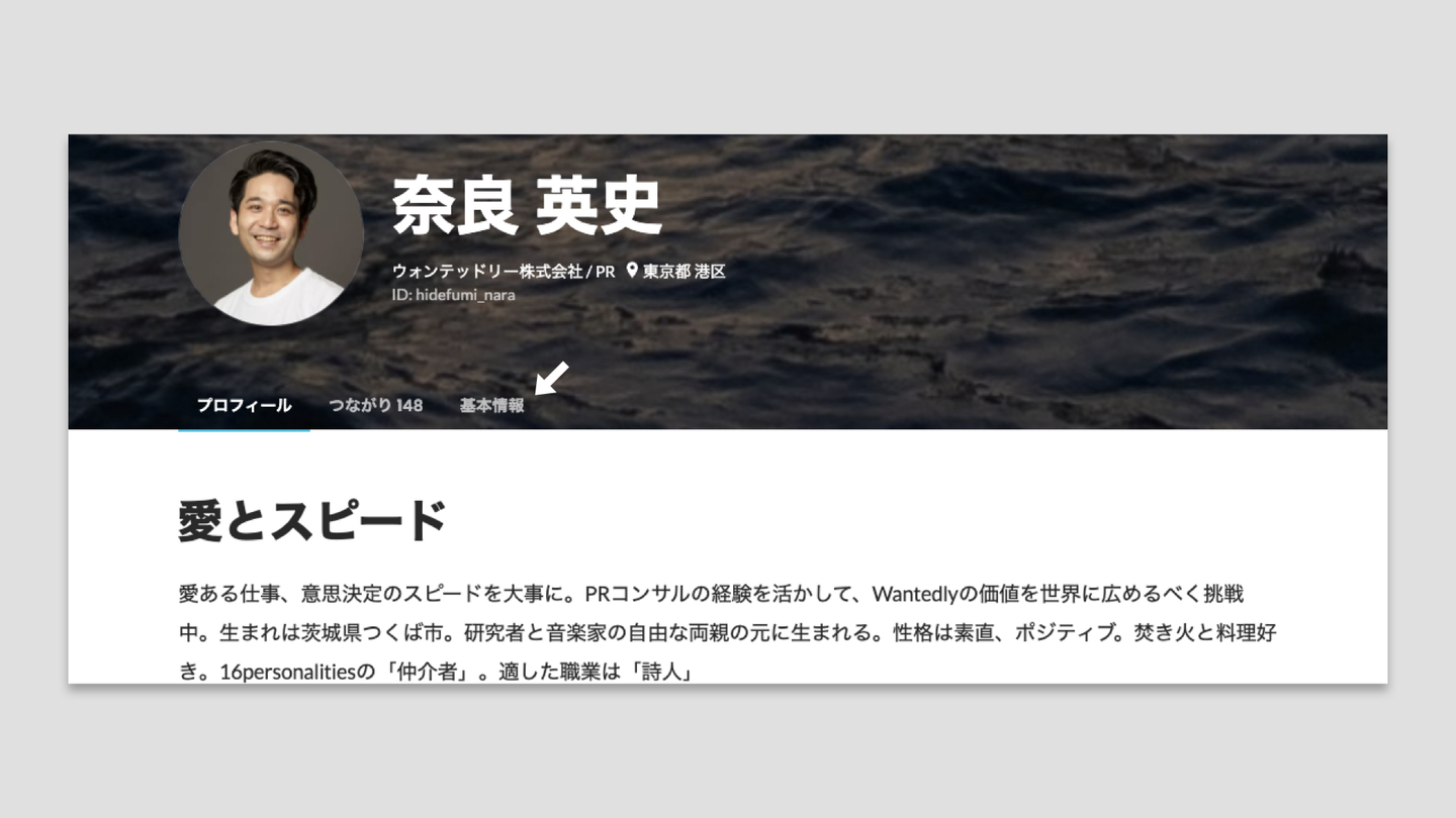 Wantedlyのプロフィールには