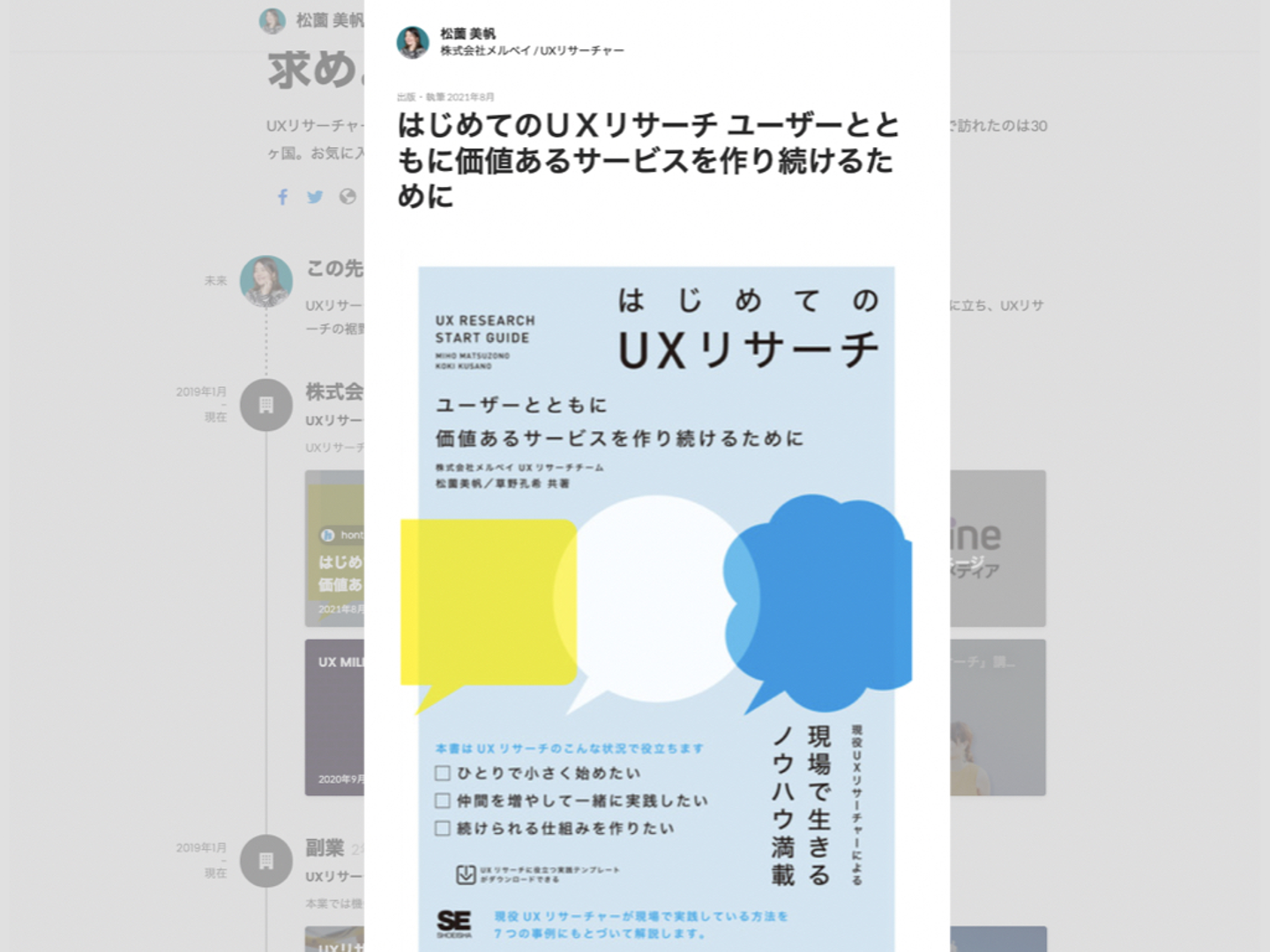 「出版・執筆カード」はブログを書いたり、インタビューを受けたり、出版したり、登壇資料を公開した時に使いましょう。URLを入れると自動でサムネイルが入ってタイトルも入る優れもの。書籍はもちろんのこと……。