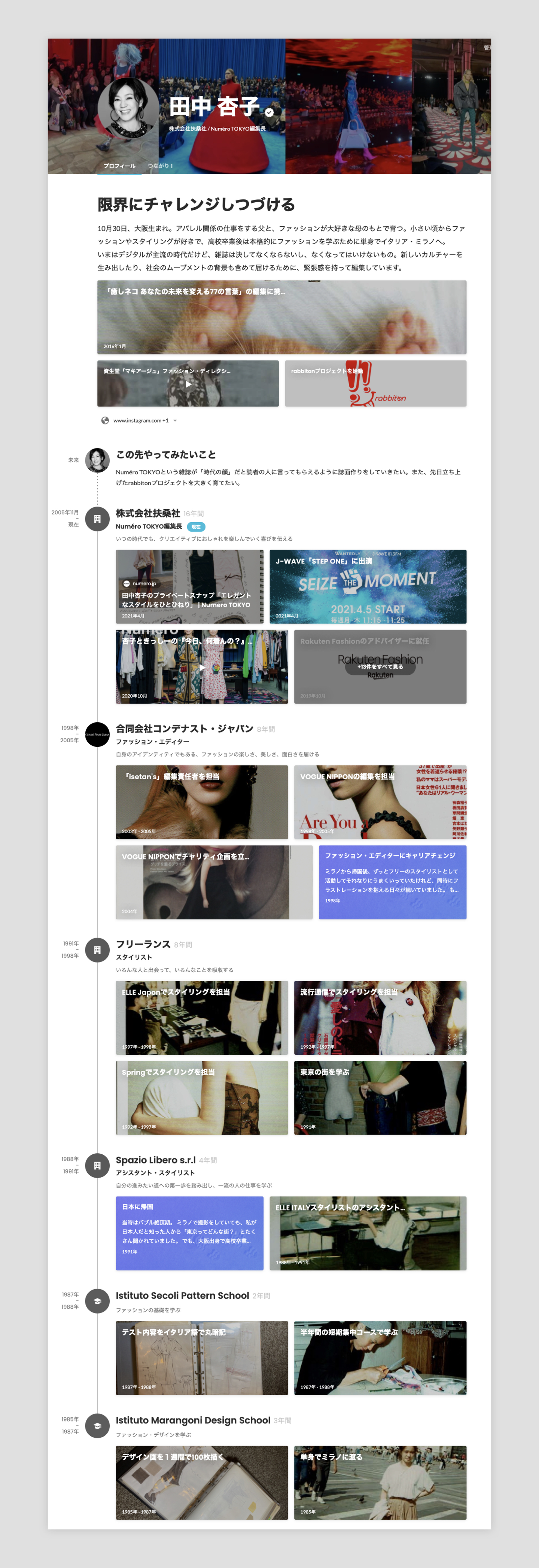 たとえば、Numero TOKYOの田中杏子さんのプロフィールはこのような形です。