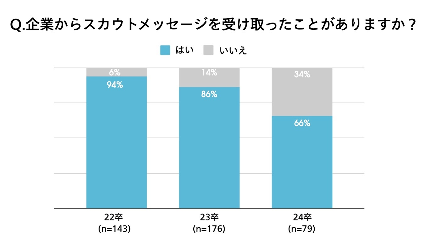 ・23卒の86%、24卒の66%がスカウトを受け取った経験有り