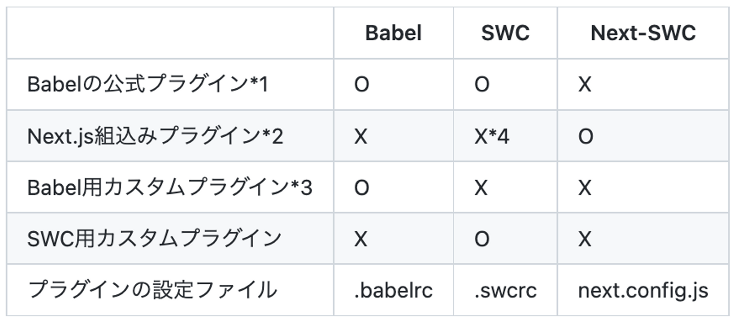*4: 今後、多くのNext.js組み込みプラグインはSWCのカスタムプラグインとして使えるようにサポートされていくと思われます