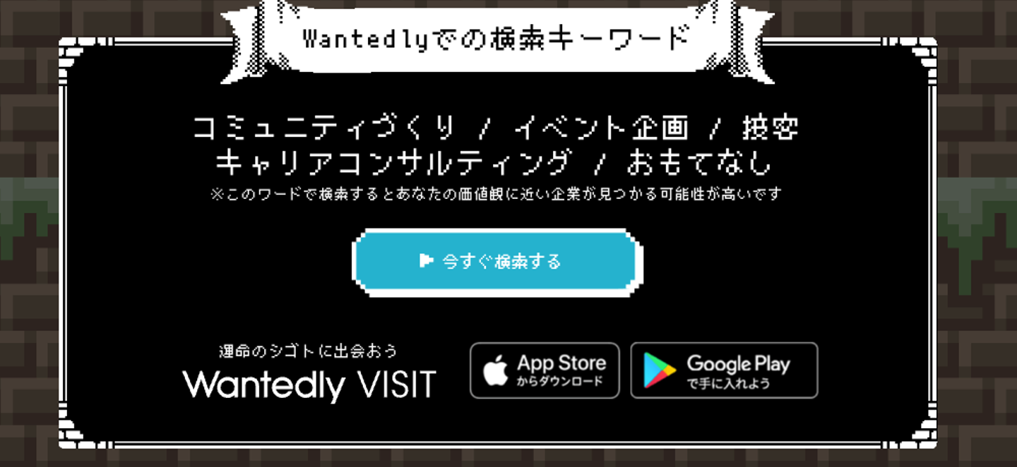 前半の個人ワークでは、診断結果の下部に出てくる「Wantedlyでの検索キーワード」を用いて、Wantedlyで面白そうな仕事を検索してみよう!という内容を実施。