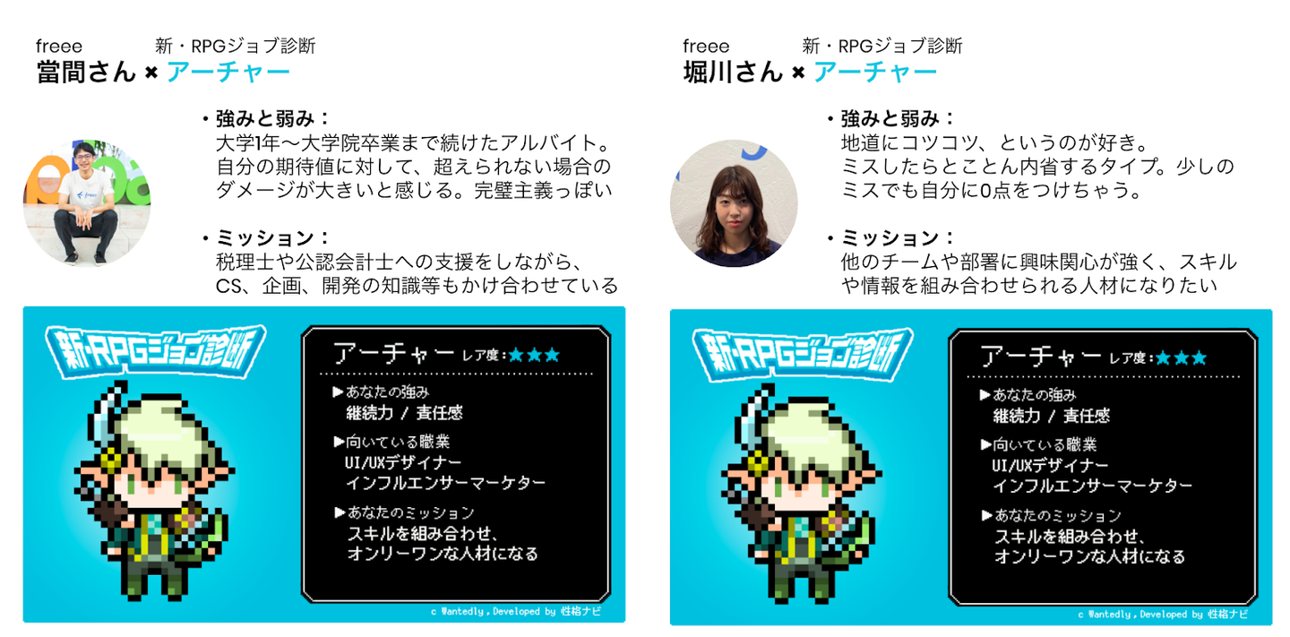 続いて、Wantedlyがリリースした性格診断コンテンツ・「新・RPGジョブ診断」の診断結果を見ながら、どこが共通しているのか・心当たりは?というトークで盛り上がりました!