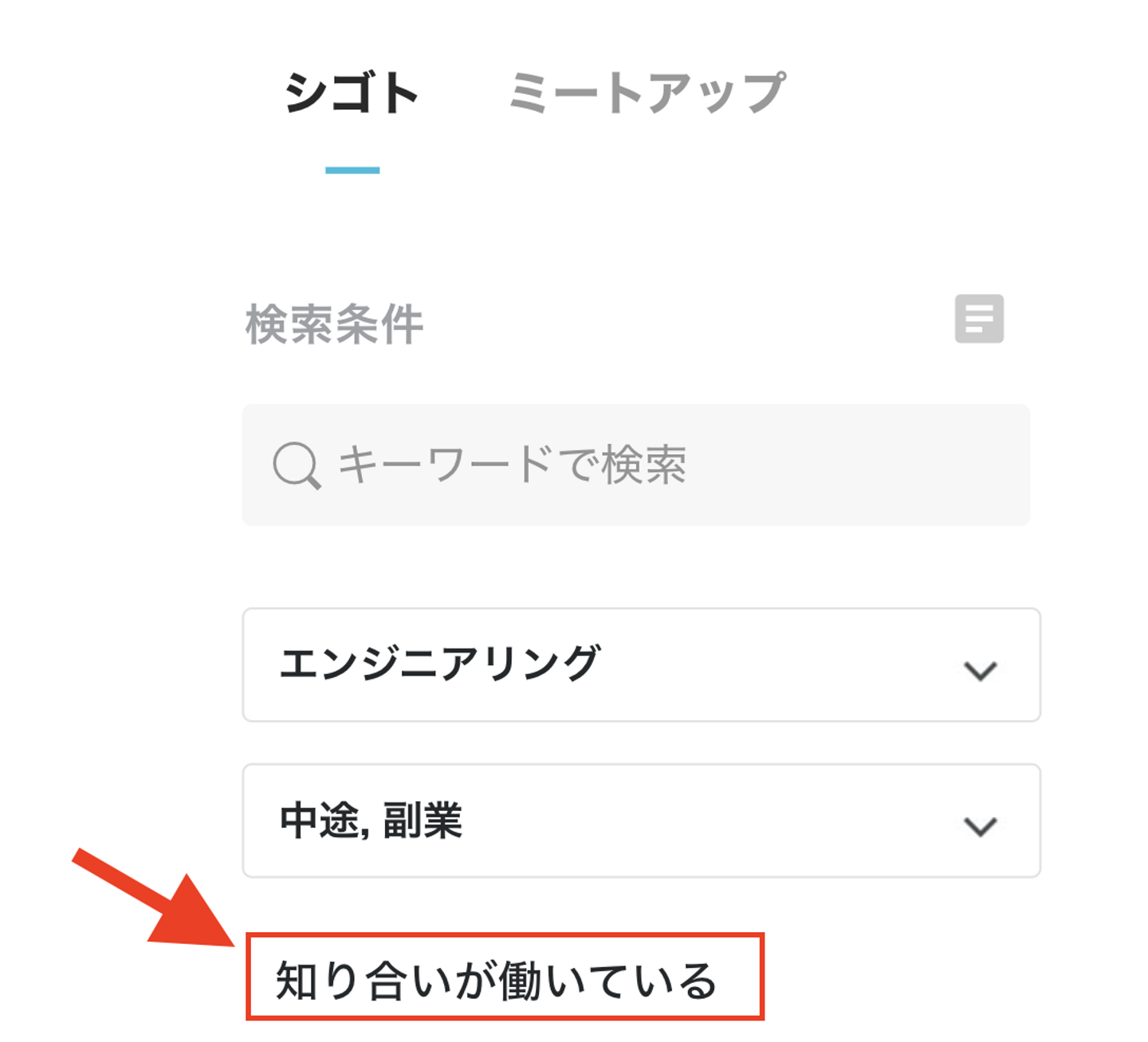 また推薦アルゴリズムだけでなく募集の検索条件に「つながり」の条件を追加することによって、能動的にも「つながり」を軸に仕事を探せるようにしています。