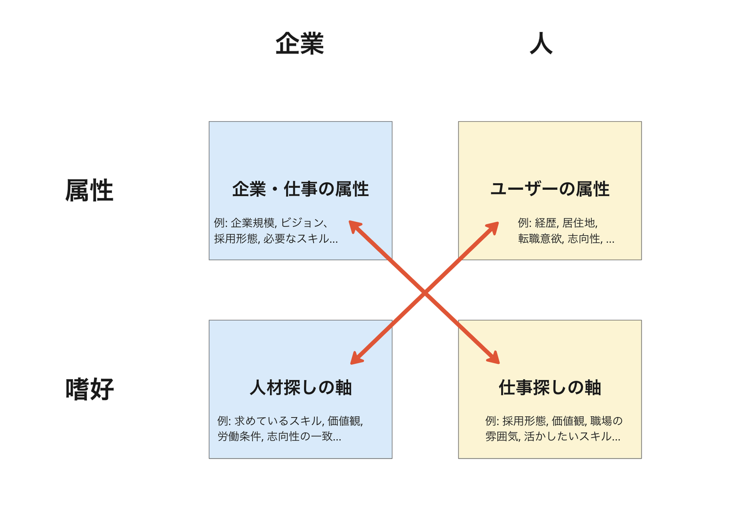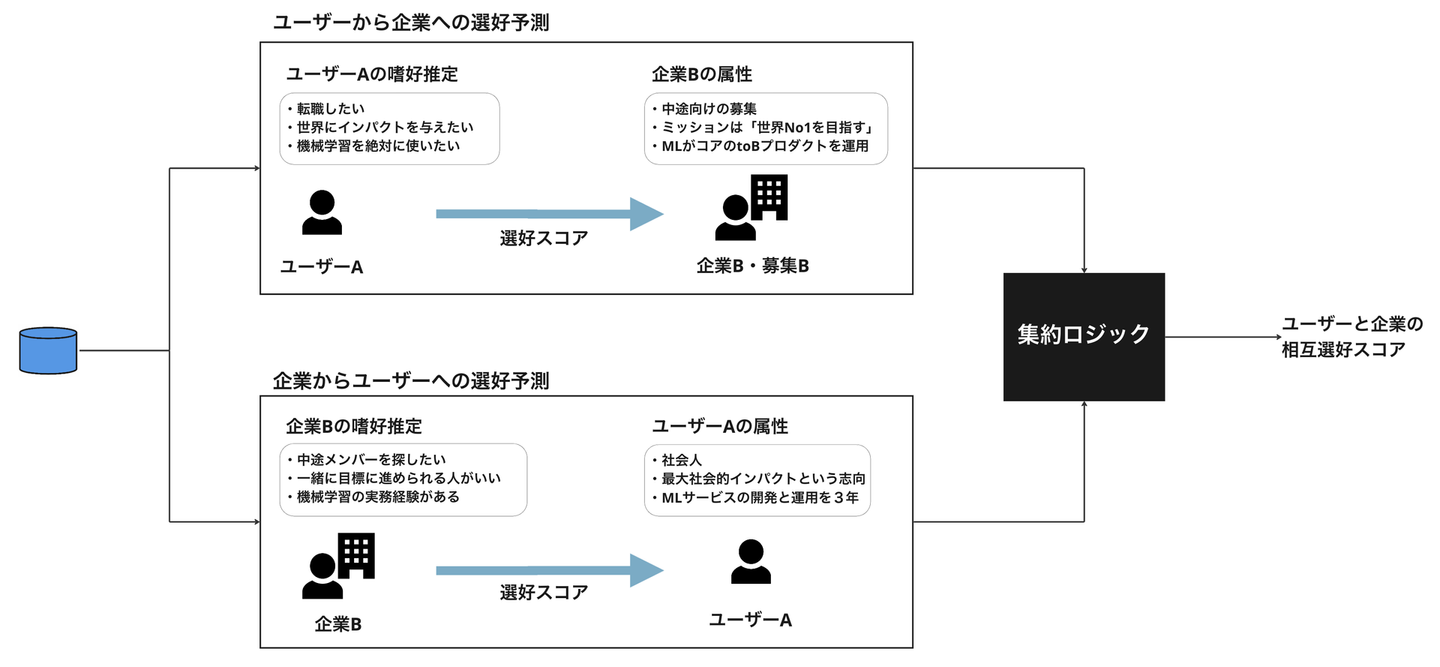上記はユーザーの嗜好に関する話をメインとしていましたが、良質なマッチングはユーザーの嗜好と企業の嗜好の両方が満たされることで初めて成立します。
