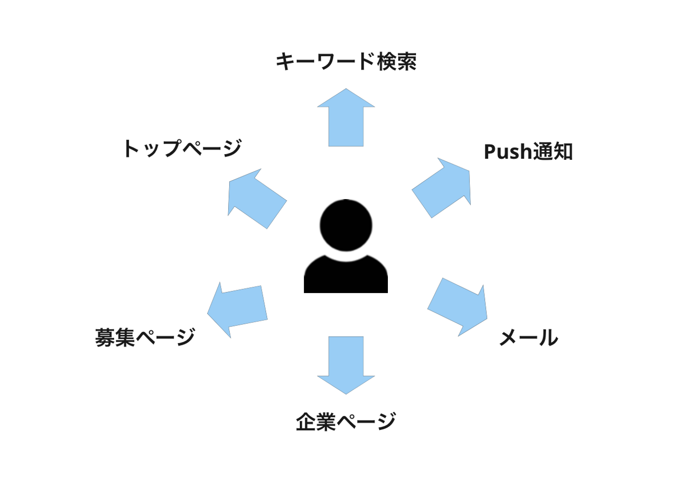 - 例えば、候補者を探す企業のスカウトでミスマッチが増えてしまうとする。企業はスカウトを送ってもユーザーとマッチングできず、期待される採用成果を見込めないから利用を止めてしまう。ユーザーは関心のないスカウトばかりを受け取るようになることでサービスに対する印象が悪化する。また利用企業数が減ってしまうことで企業コンテンツの量と質が減少してしまい、ユーザーは魅力的な仕事を探すことが難しくなってしまう。