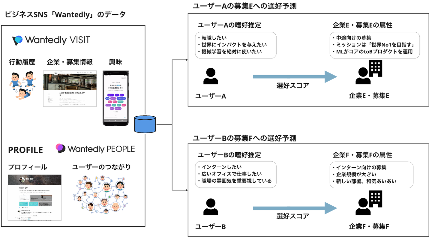 この記事では、ウォンテッドリーのデータサイエンティストが開発している推薦システムについて紹介します。会社訪問サービス「Wantedly Visit」で実現したい理想のために推薦システムが必要不可欠なソリューションであること、そして Wantedly Visit における推薦システム開発の面白さと今後の成長余地について多くのデータサイエンティストに知ってほしいです。