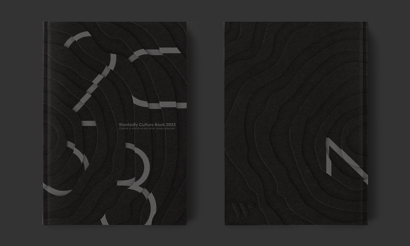 一方、Wantedlyのデザインフィロソフィは「知的・大胆・洗練」。もっと“大胆さ”を出そうと検討を重ねた結果、タイポグラフィは可読性と凹凸のバランスを見て、読めるか読めないかギリギリのラインを攻めた。ベース色には黒を採用することで、昨年までのデザインとのつながりを持たせつつ、年輪部分のエンボスを強調し、これまでにはなかった有機的な印象を前面に打ち出した。