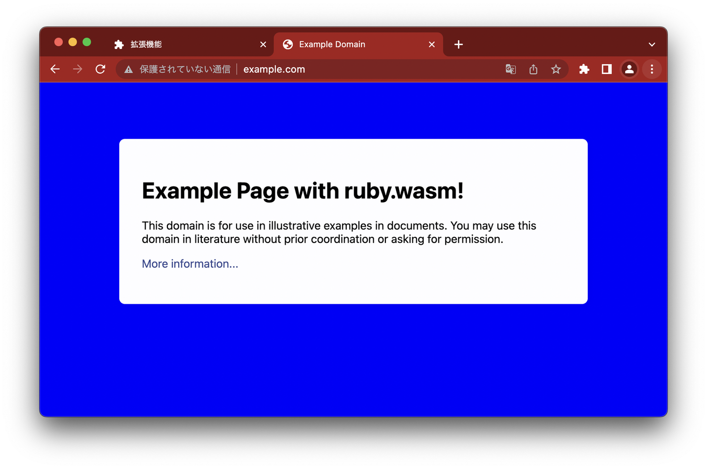 Ruby3.2 supports WASM and can run ruby.wasm on the browser. As a way to incorporate it into a working application, I came up with the idea of building a Ruby framework for Chrome extensions. I will present its mechanism and goals.