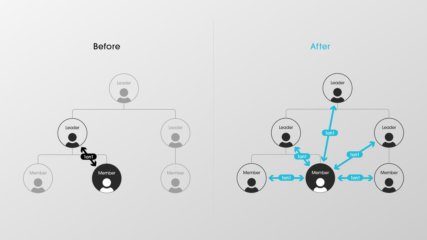 これまではPulse上でリーダー設定されている人とだけ1on1ができました。しかし、1on1制度が社会的に浸透してきた中で、リーダー以外とも1on1を行うケースが多いとの声を利用企業さまからいただくことが増えてきました。