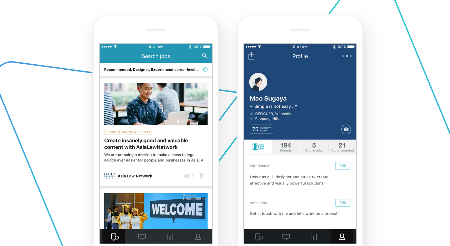 ウォンテッドリーは、究極の適材適所を通じて、あらゆる人がシゴトに没頭し成果を上げ、その結果成長を実感できるような「はたらくすべての人のインフラ」を構築しています。