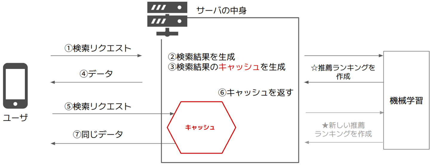 - しかし、サーバは★のランキングを参照することはなく、前回生成したキャッシュを取り出して使う