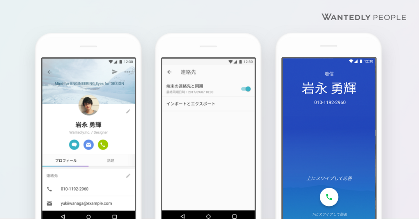 今回は、ビジネスシーンの中で欠かせない電話でのコミュニケーションにフォーカスし、「Wantedly People」に登録されている名刺情報とスマートフォン(iOS/Android)の連絡先を連携させることで、名刺交換相手からの着信時に発信者の名前が表示されるようになります。