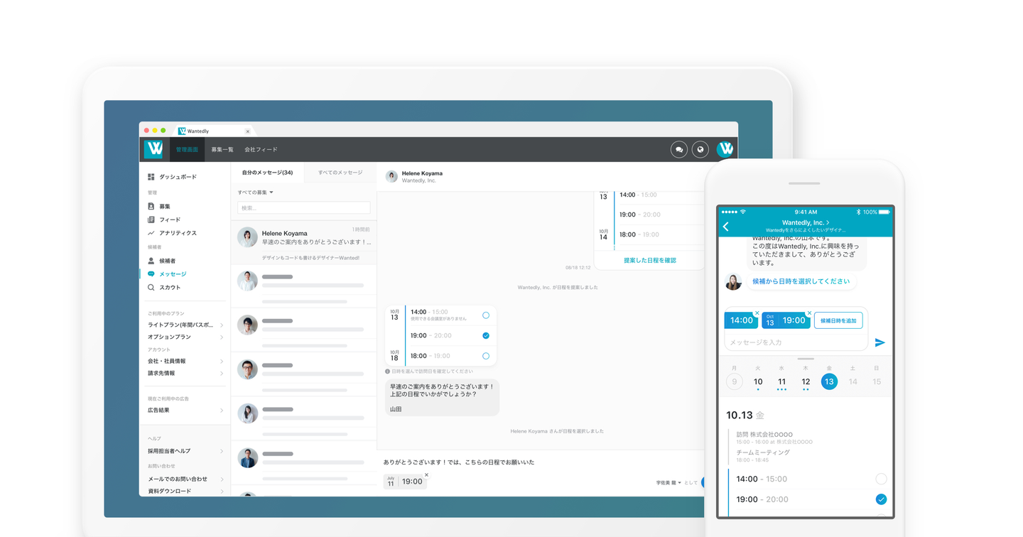 採用担当者が最短2回のクリックで最適な面談の候補日を候補者に送れるようになるだけではなく、候補者も送られてきた面談の候補日を選択するだけで返信することが可能です。企業と候補者のやりとりがスムーズになることで、マッチングの向上に繋げていきます。