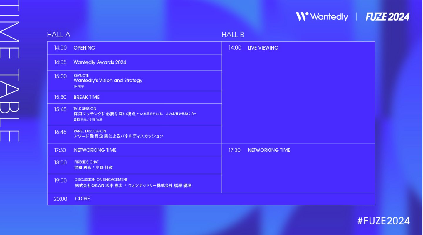 ウォンテッドリーは10/9(水)渋谷ヒカリエホールにて、「採用と組織づくりをリードする」をコンセプトに掲げたイベント「FUZE2024」を開催しました。今年で通算5回目を迎えた本イベントには、過去最多となる約600名の方が来場され、会場全体は熱気に包まれました。