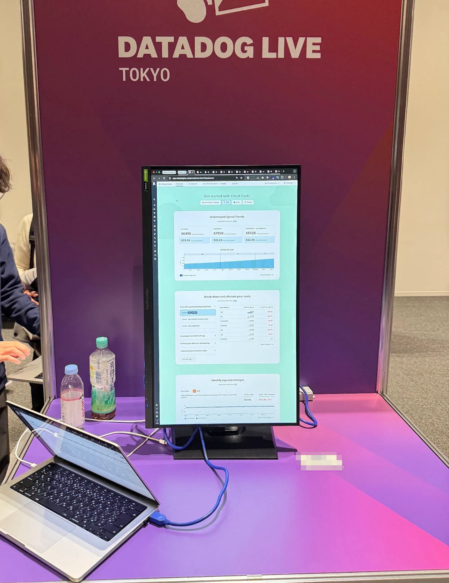 ロビーには気軽に Datadog の機能紹介が受けられるデモブースが設置されていました。私も以前から気になっていた Cloud Cost Management について紹介していただきました。