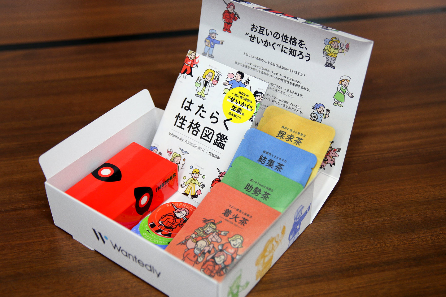 性格診断は、自己理解に活用することはもちろん、結果をチームメンバー間でシェアすることで、相互理解にも役立てることができます。各自の診断結果と共に、このボックスを活用し「ゲームやお茶の時間を通して、仲間同士の親睦と結束を深めてもらいたい。」そんな想いを込めてアイテムの選定とデザインをしました。
