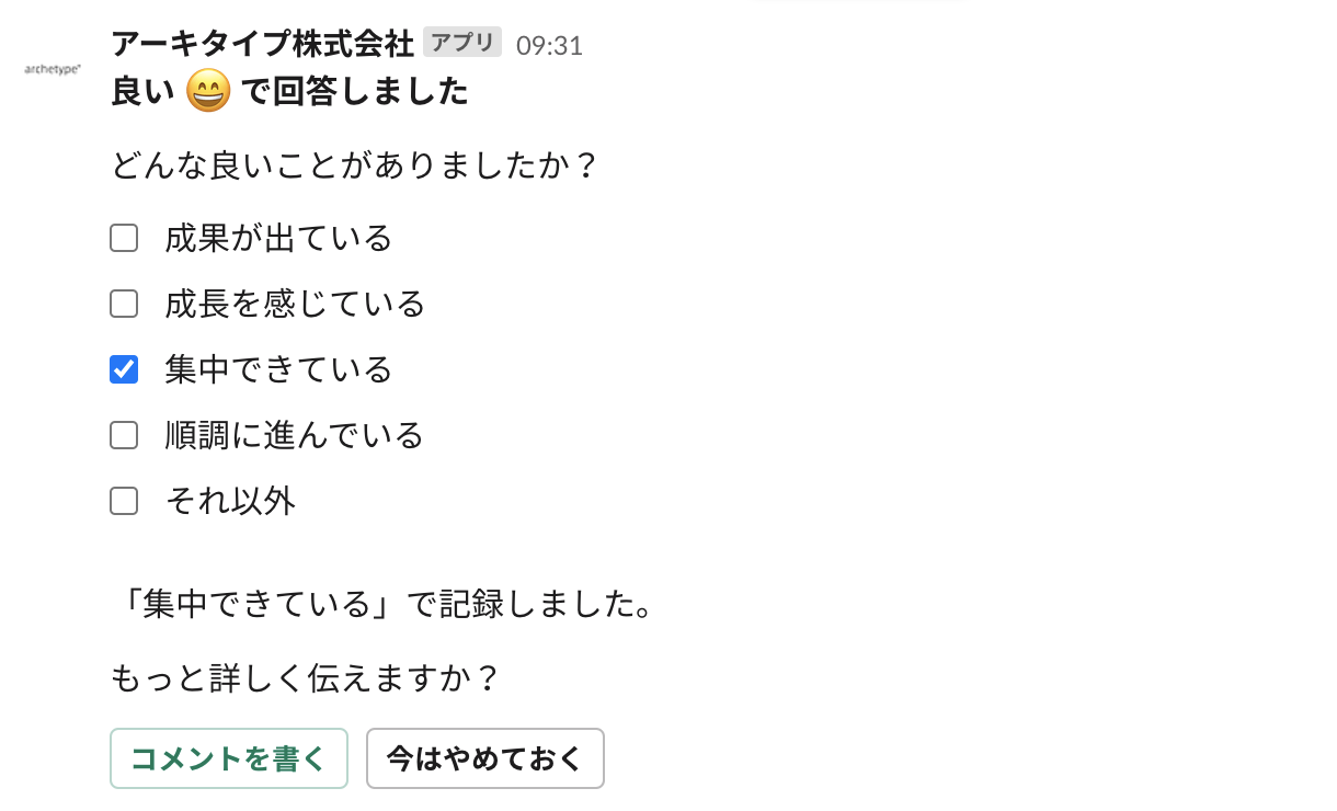 米原:当初は運用基準は設けず利用していましたが、Wantedlyの担当者の方から「調子のよくない週が続いたら声をかけましょう」など具体的な対応例をアドバイスされ、変化の兆候を感じられたスタッフにはマネジャーからコンタクトするようにしています。