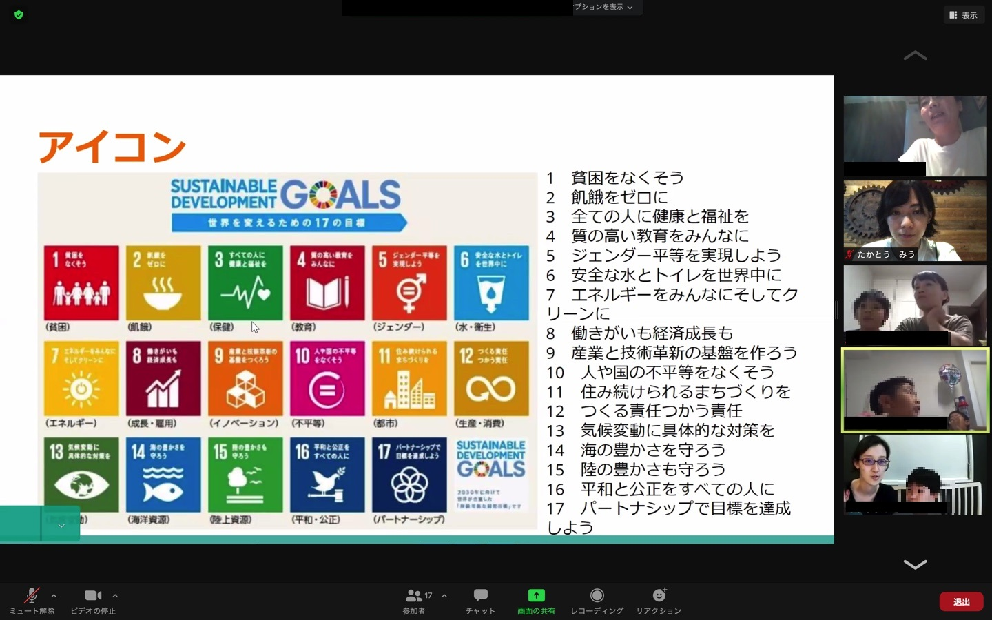 次に、副業で子供向けのプログラム運営などに関わっている社員の藤見さんから、SDGsついてお話しを聞きました。その後ジャムボードを使ってSDGs×Warisについてそれぞれの考えをシェアしました。その時は、「子供の視点って面白いな〜」と特段感じられた瞬間でした。
