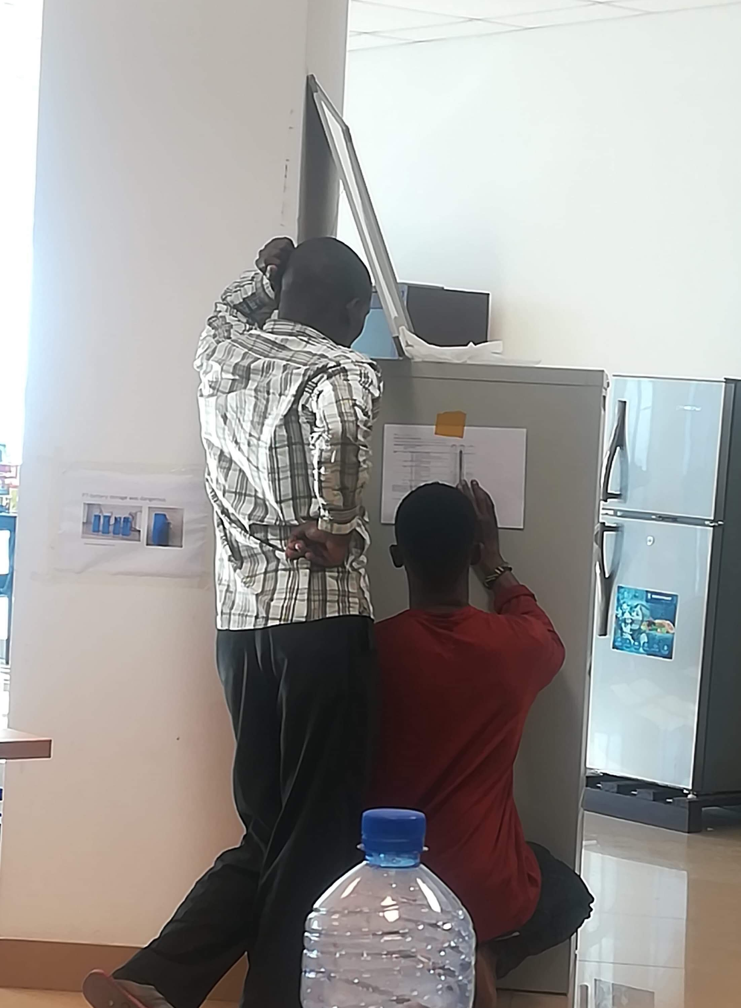 主な仕事内容としては、フィールドで使用されて故障して戻ってきたランタンのトラブルシューティングと修理作業です。各村のKioskから故障ランタンがあるという報告を受けると、Wasshaの営業部隊がKioskへ回収に向かいます。回収した故障ランタンは、翌日オフィスの作業場に待ち構えているENGメンバーが受け取り、修理作業を始めます。