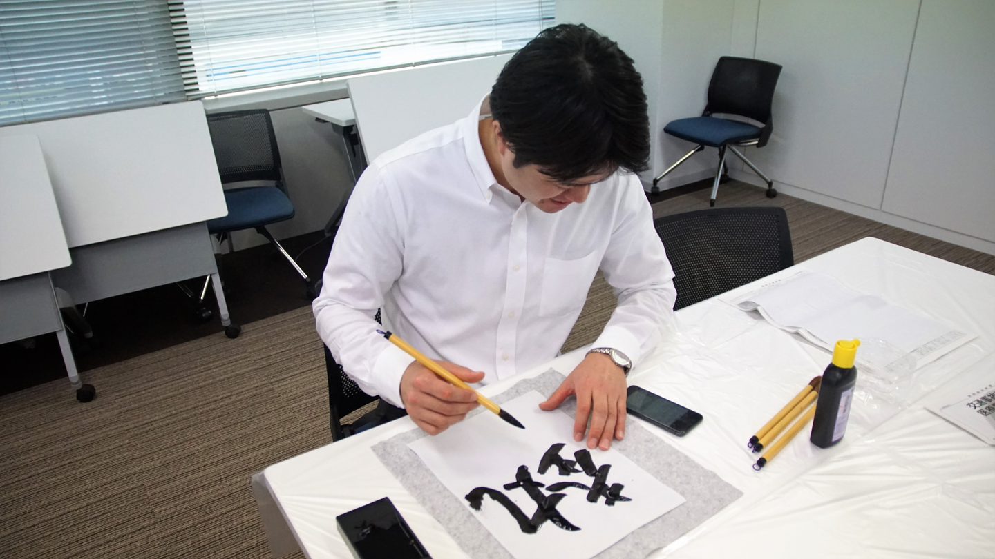開始と同時に真っ先に来てくれたのが、入社5年目セールスのTさん。トップバッターに相応しく書いた字は「勢」でした。