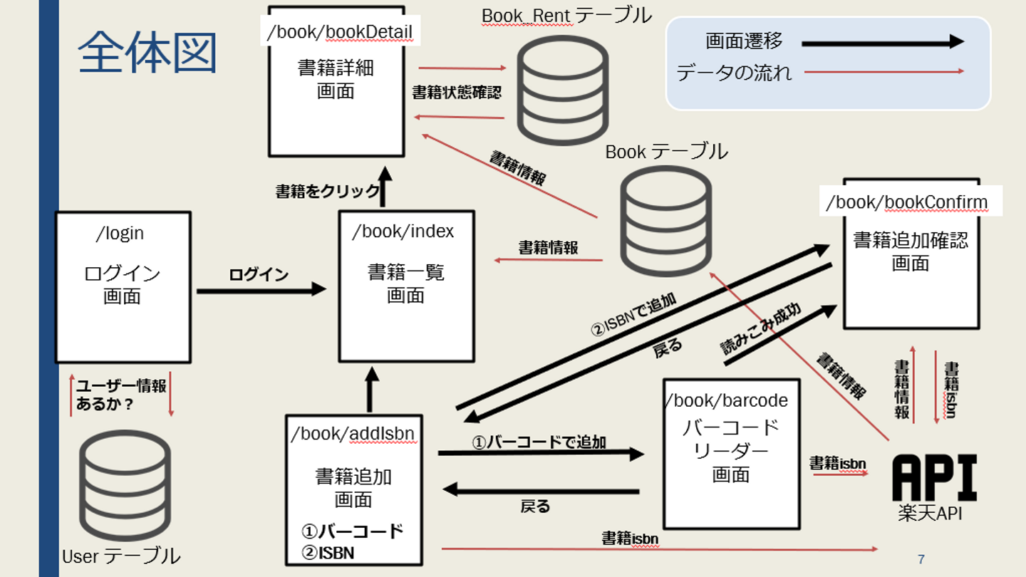 └最後は研修のまとめとして、これまで学んできたことを駆使し、システムDiv.メンバー全員の前で作ったアプリ(社内用の図書管理ツール)を発表を行いました。
