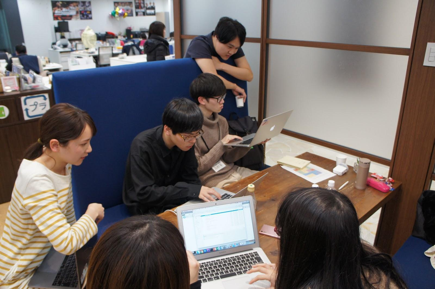 開発も佳境で、インターン生もメンターも今まで以上に熱くなる!メンター以外のメンバーも応援にやってきました。運用担当やメンターをはじめ、Webディレクターなど関わるメンバーの多さは、当社のインターンならでは。
