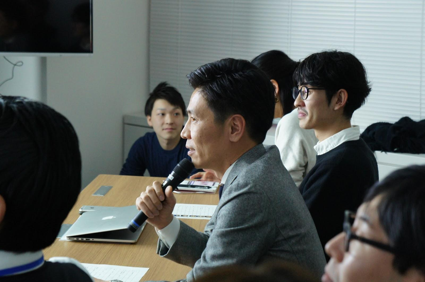 最終プレゼンの会場は満席!フレッシュな意見に触れるべく沢山のメンバーが参加しました。各チームからプレゼンを行い、代表 日紫喜からの質問も飛びます。