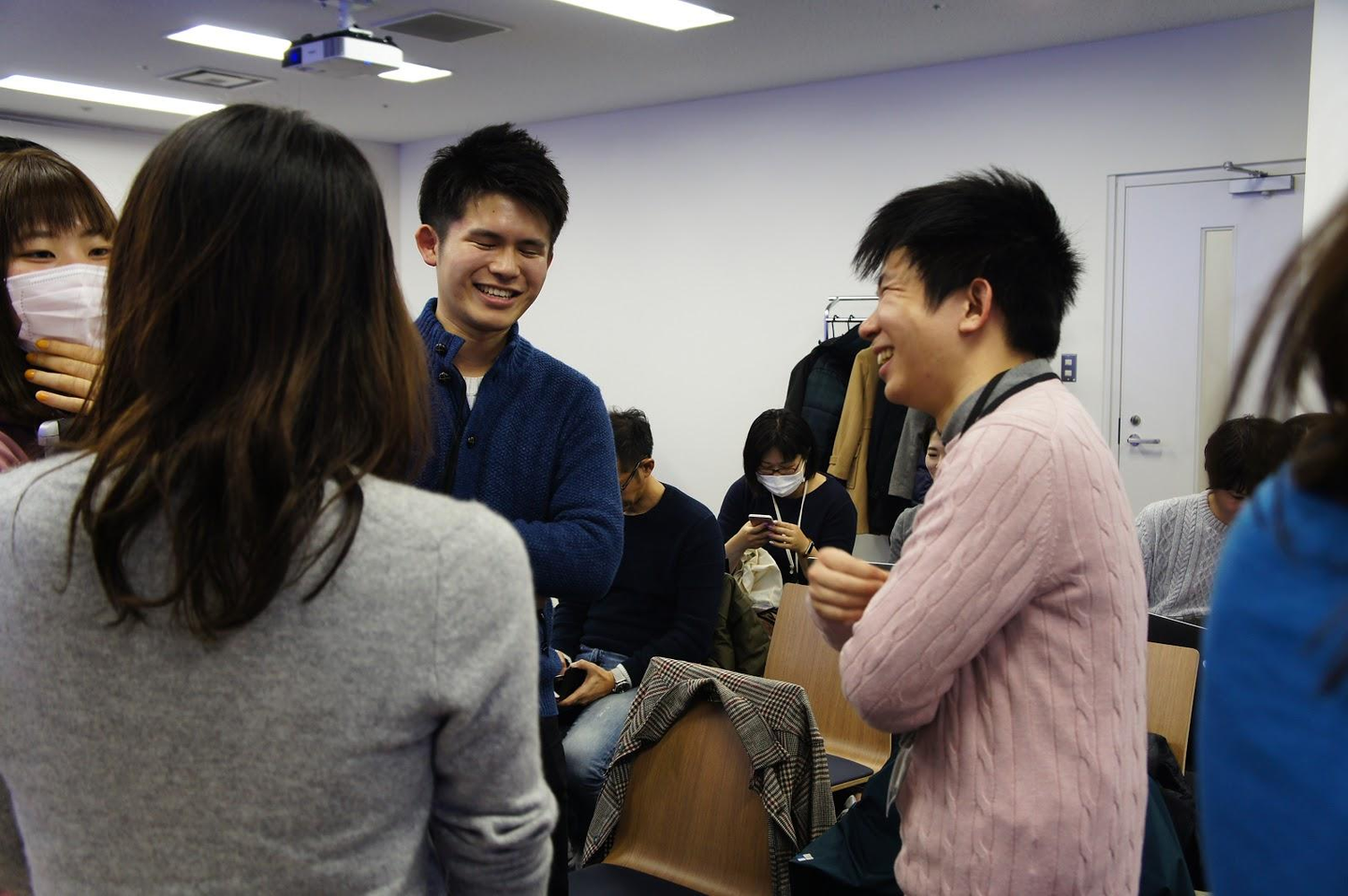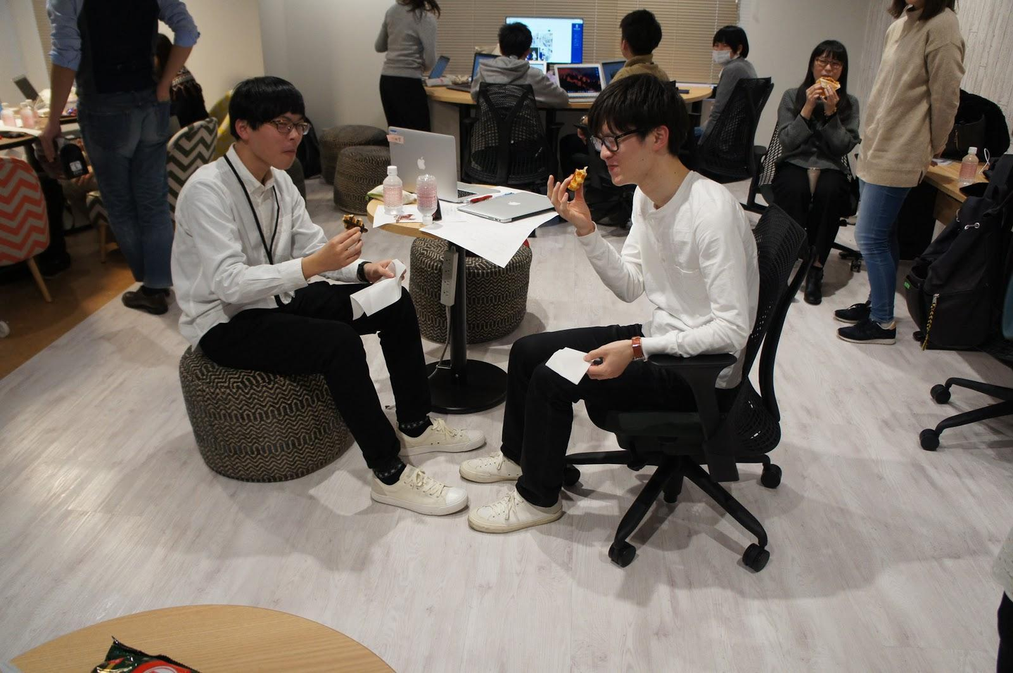 別室で審査を行い、一方、会場ではインターン生とメンターのねぎらいタイム。