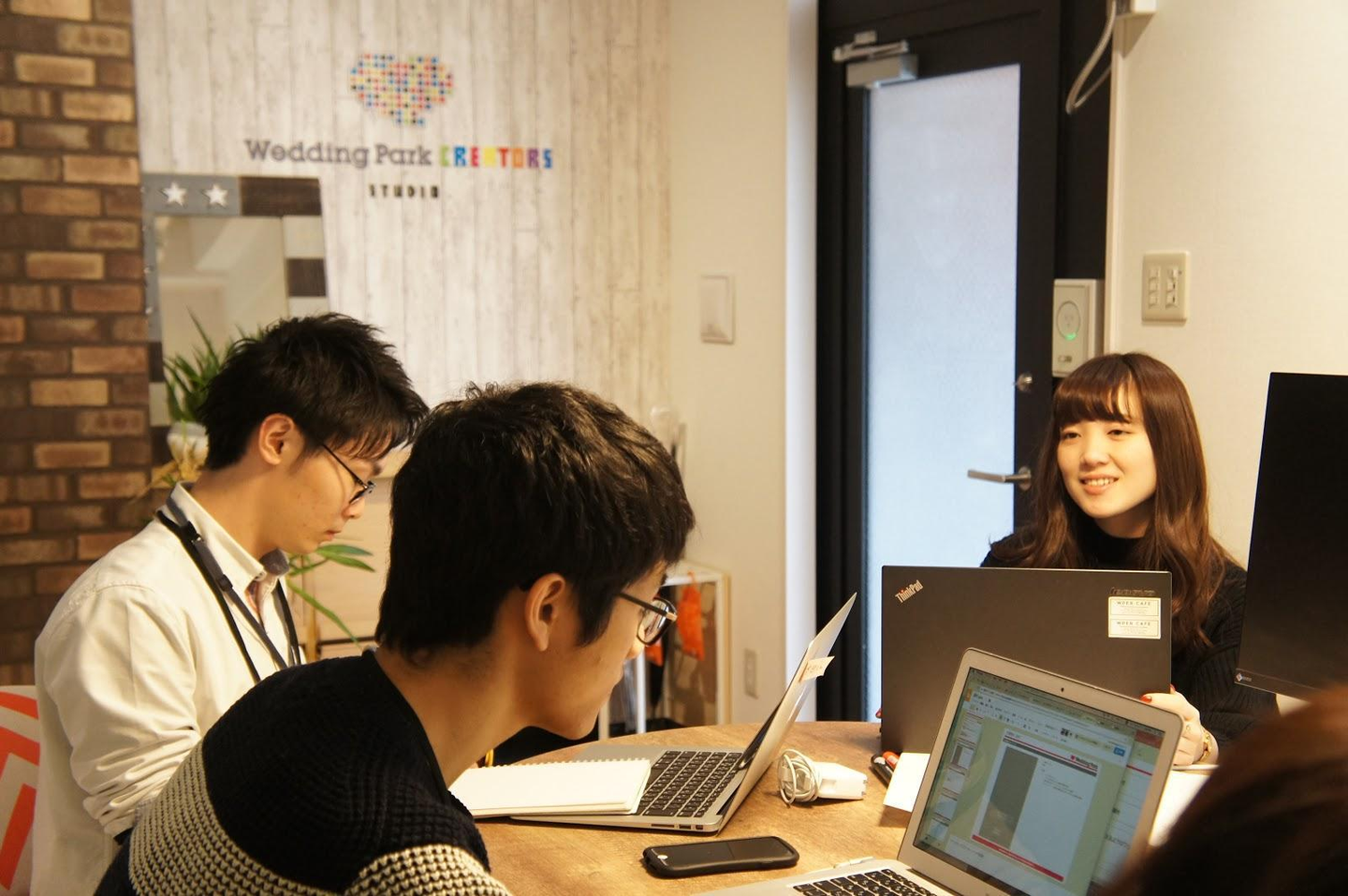 代表の日紫喜から今回のインターンで大切にして欲しいポイントをお伝えし、設計・開発に入ります。この日は本社オフィスを離れ、Wedding Park CREATORS STUDIO※で集中開発! ※クリエイター(エンジニア・デザイナー)専用サテライトオフィス