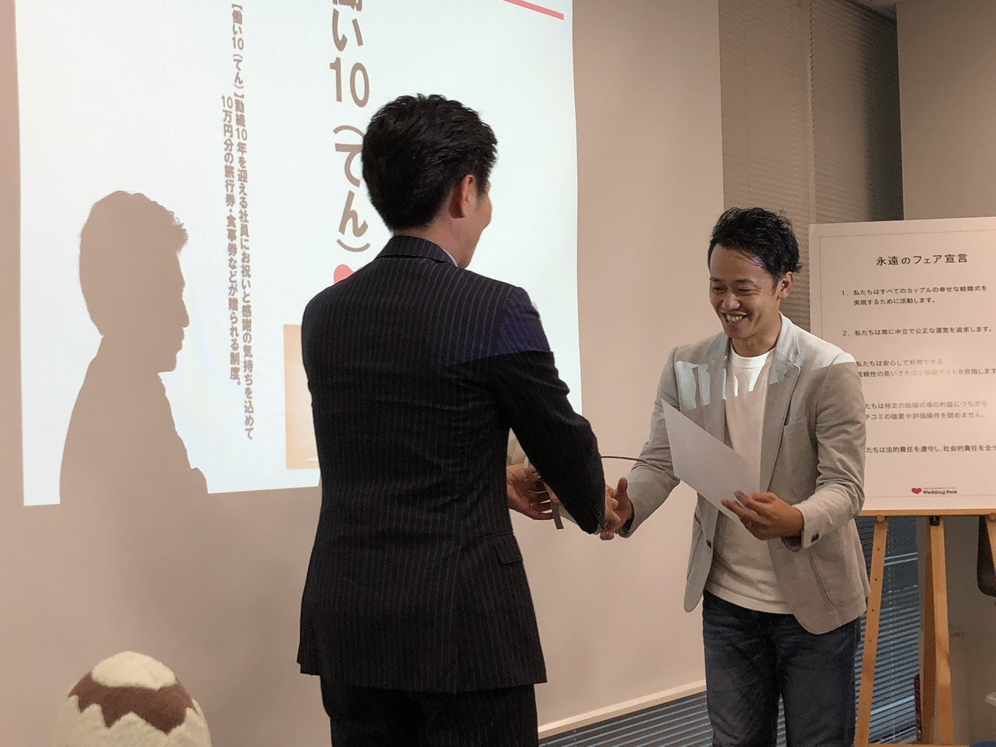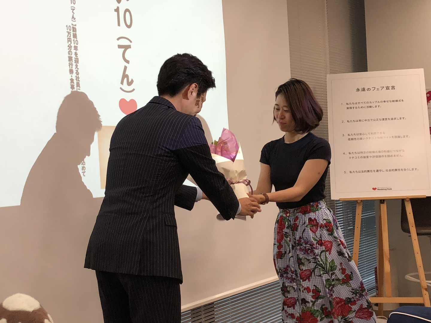 (後ろに写りこんでいるのは、Wedding Parkサイトの運営で大切にしている永遠のフェア宣言。)