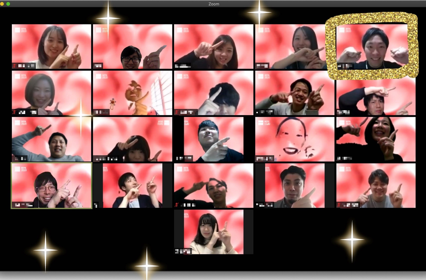 当初は「社内SNSで表彰者の発表を行う」という内容の予定でしたが、”表情も含めてコミュニケーションをとってもらいたい。”と社内活性化チーム「WPPJ」がZoomでのオンラインイベントとしての開催準備を進めてくれました。