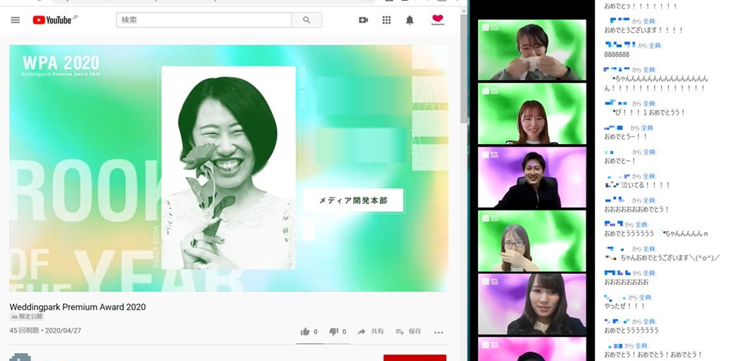 新型コロナウイルスの影響による緊急事態宣言を受けて、現在は全員が在宅勤務中のウエディングパーク。半期に一度結婚式場で行っていた社員総会も、4月は残念ながら中止という判断に。しかしながら、“上半期のメンバーの活躍や貢献を最大限労いたい”という経営陣の想いから、社員総会の代わりに、オンラインでの表彰イベント「Wedding Park Premium Award 2020」を開催することになりました。