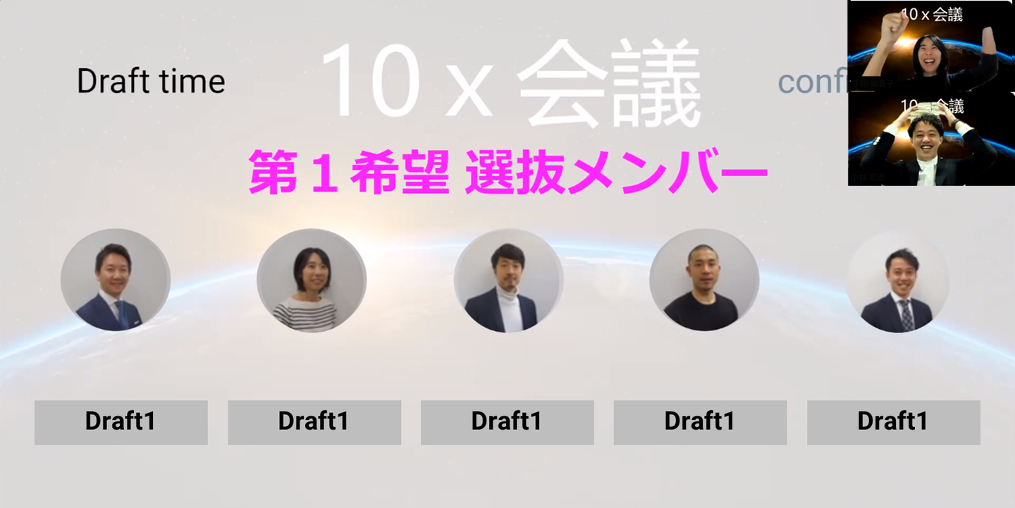 ・ドラフト会議もオンラインで実施。各チームリーダーが4名を選抜し、5名5チームを決定しました。