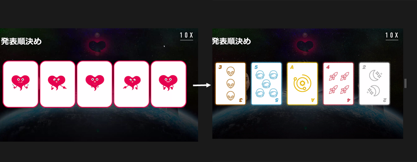・発表順はチームリーダーが選んだトランプをオープンし決定。チャットも盛り上がり始めました。