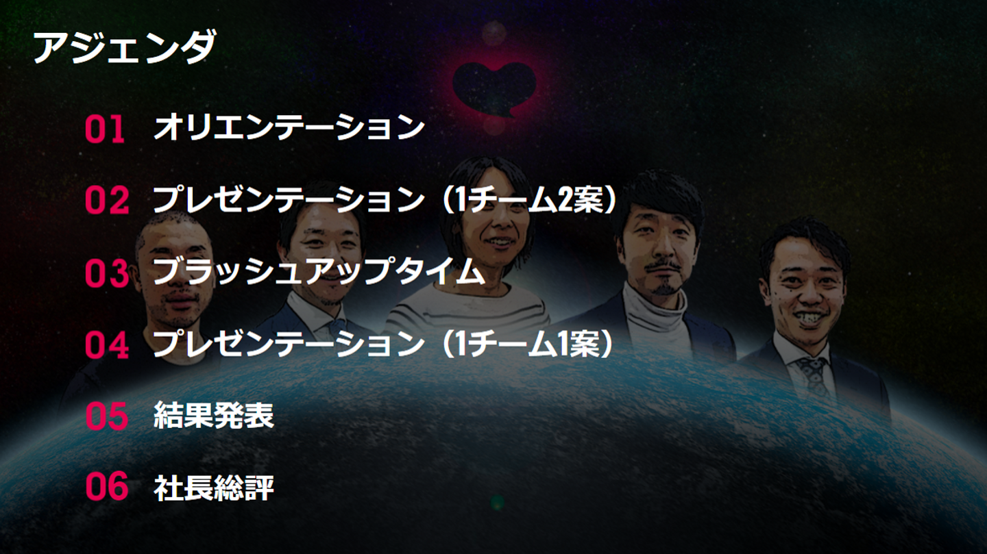 ・提案数は2案。1提案3分。2案中1案はブラッシュアップに持ち越せる。