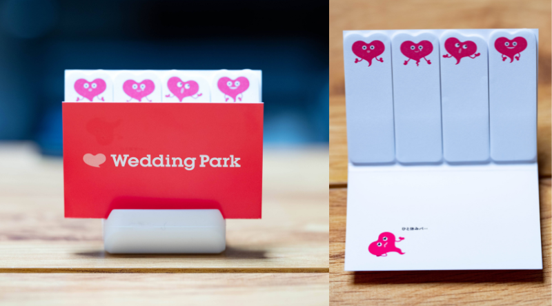 ウエディングパークからは公式キャラクター「ウエパ」の付箋を提供しました。(PHPerkaigi 2023 ノベルティフォトより)