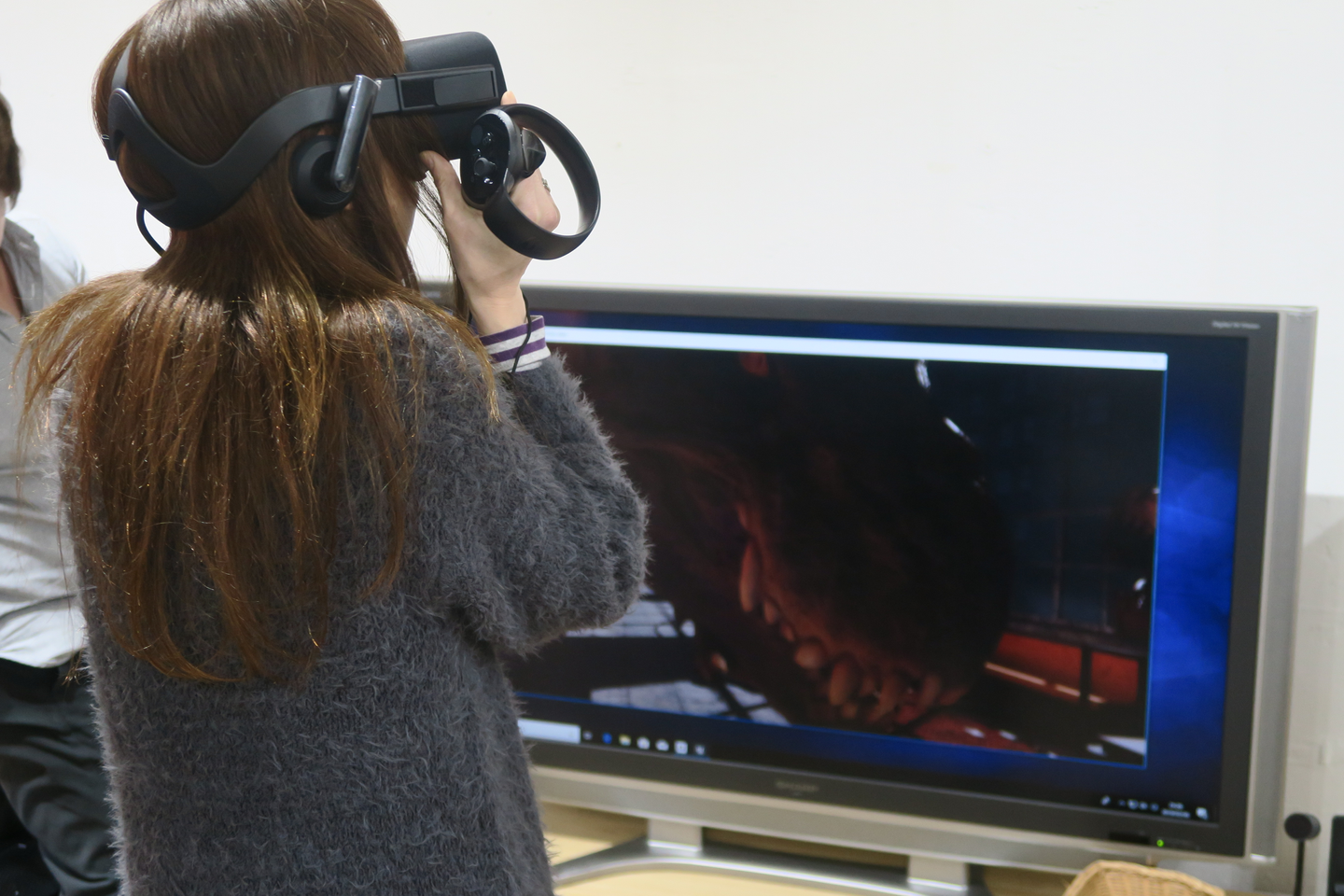 VR体験中の人が、何かを避けたり、驚いたり、怖がっていたり、、可笑しいすぎた。。