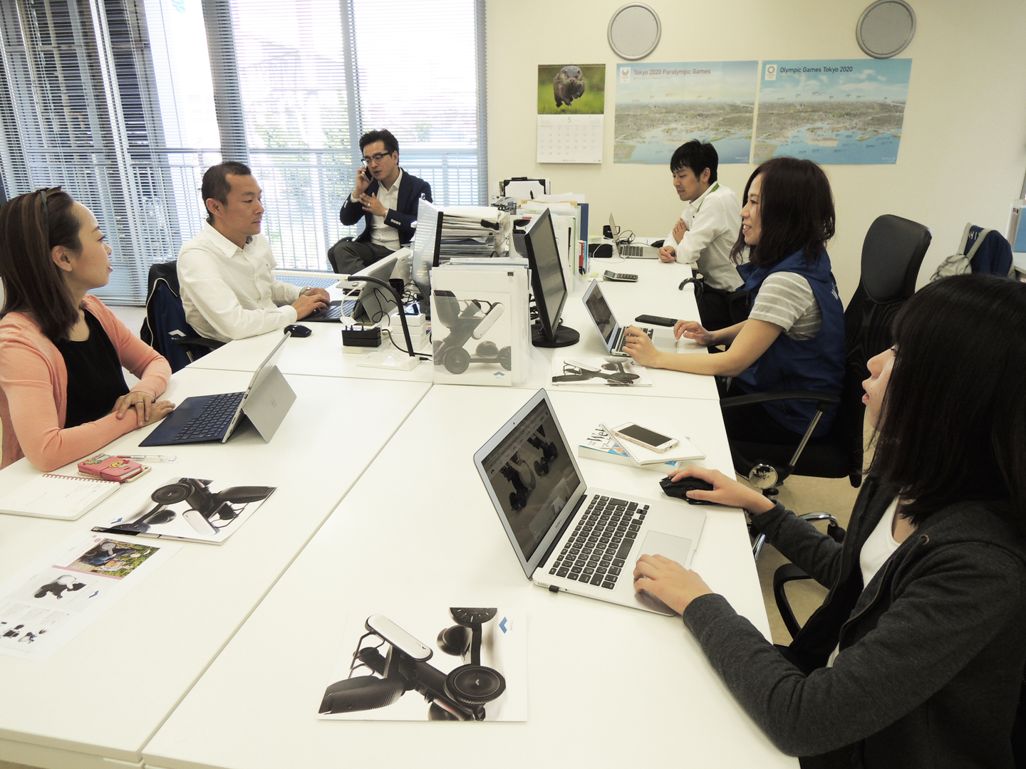 WHILL Model C発表後、メディアやユーザーの反応を確認しながら、次のアクションの確認をする営業・マーケティングメンバーの様子↓