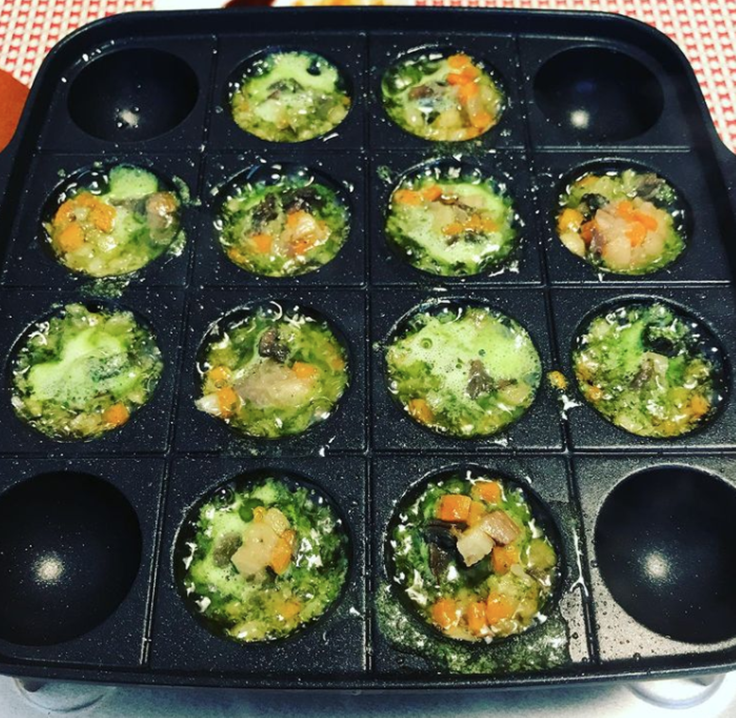 12個入り税込750円で買ってきた冷凍エスカルゴは、市販のたこ焼きプレートにフィットするので、そのままカセットコンロの火にかければOK。