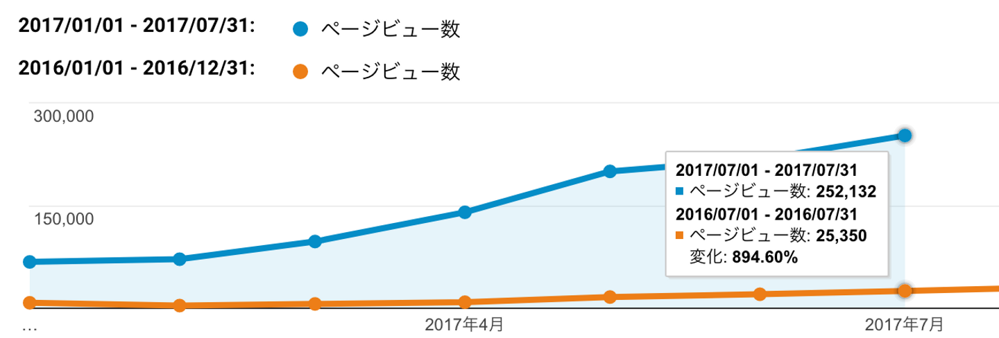 オウンドメディアを運営してきた結果、なんと2017年7月には月間25万PVを突破。