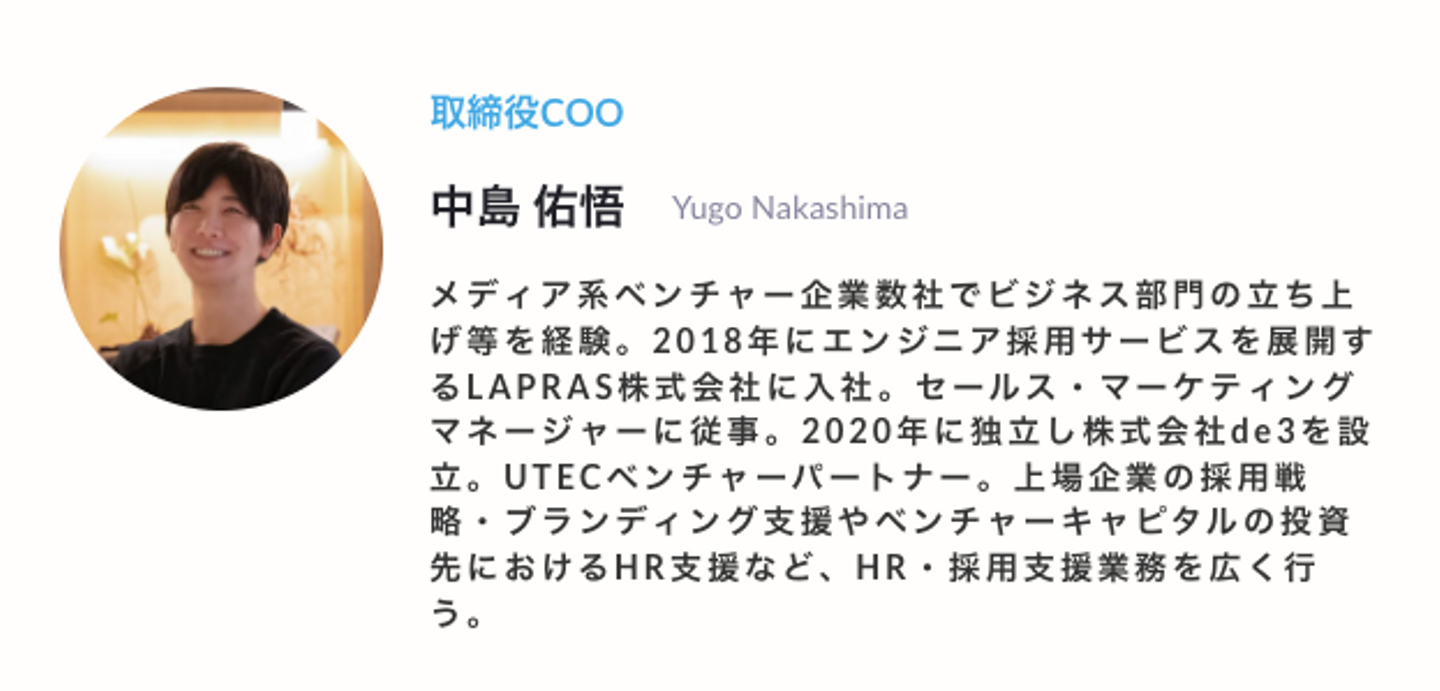 まだ小規模な組織ですのでについても紹介しておきます。ご入社いただいた際には経営陣とともに働く機会も多いですし、今後の事業や組織の方向性を見通していただくためにも簡単にバックグラウンドや特性を知っていただければと思います。